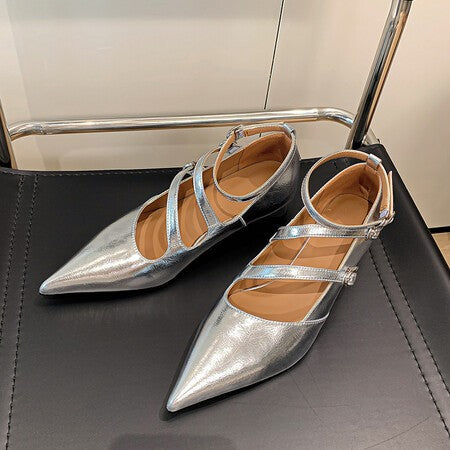 Full Leather Inside And Outside Thick Heel Pointed Buckle Leather Shoes