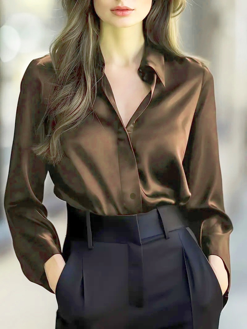 Solid Color Fashion Elegant Long Sleeve Button Shirt Women's Clothing