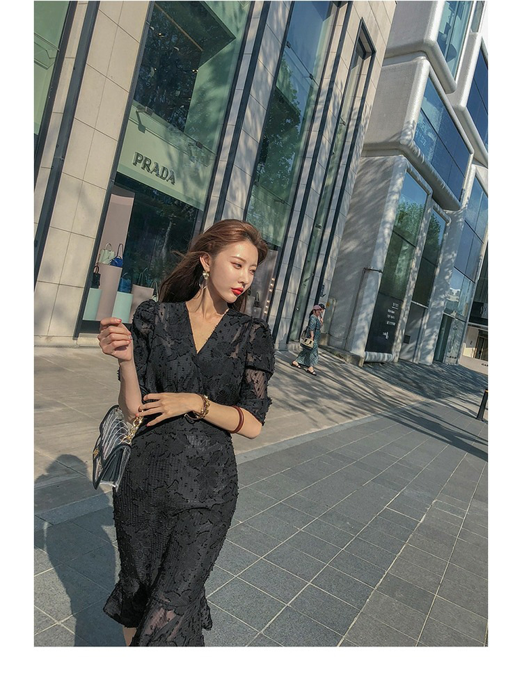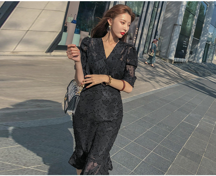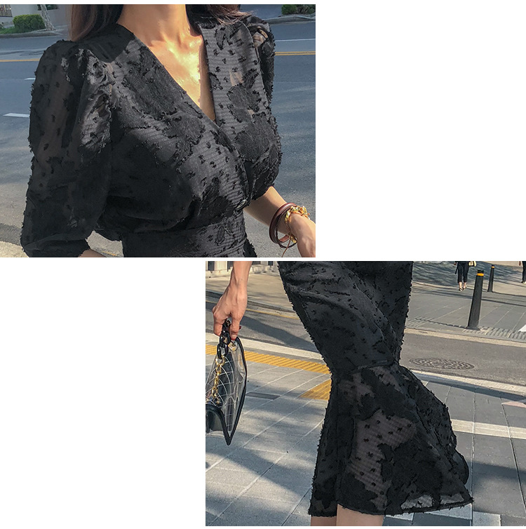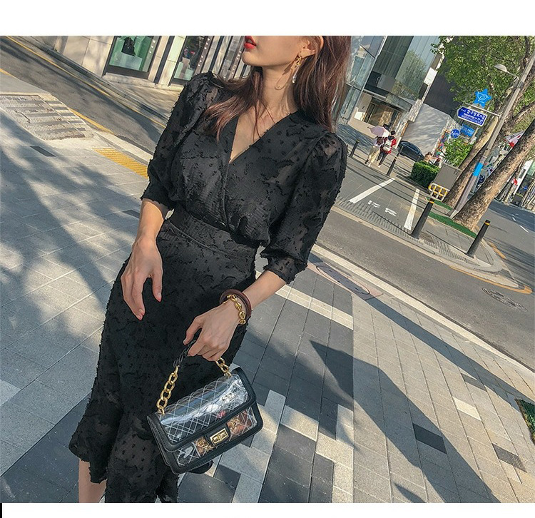Women's New V-Neck Fake Two Piece High Waist Fishtail Chiffon Dress