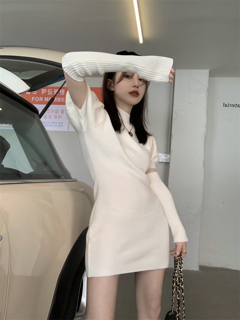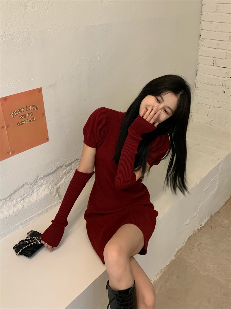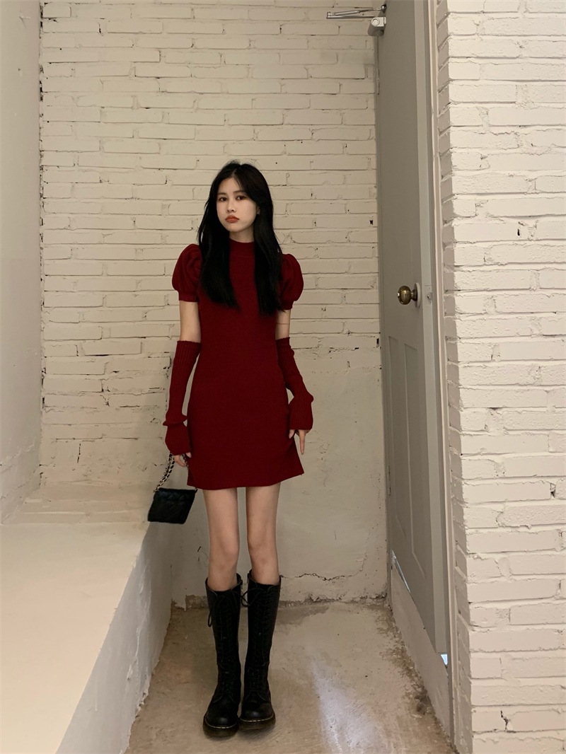Womens Slim-fit Red Knitted Dress